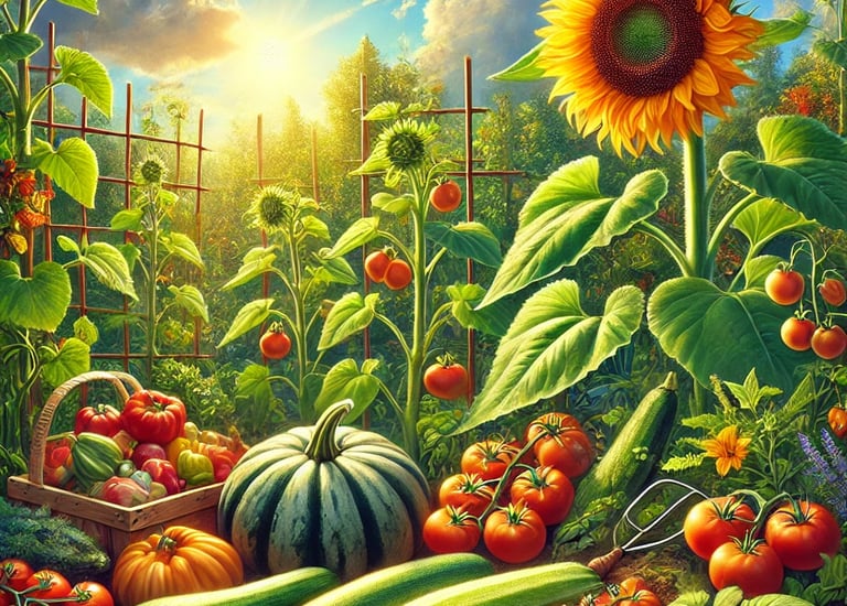 Juillet : Votre jardin est en plein essor, les oyas vous aident à maintenir l'hydratation malgré les chaleurs. Récoltez légumes et fruits d’été.